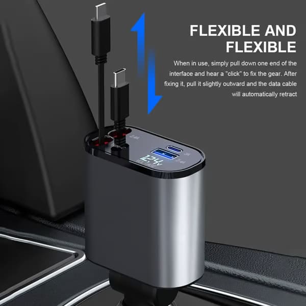 Le dimensioni compatte del caricatore garantiscono che si adatti perfettamente a qualsiasi veicolo, offrendo un facile accesso senza ingombrare lo spazio.