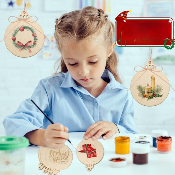Trasformate il vostro arredamento natalizio con 30 dischi di legno di prima qualità preforati, perfetti per creare ornamenti personalizzati che aggiungono un fascino rustico al vostro albero di Natale.