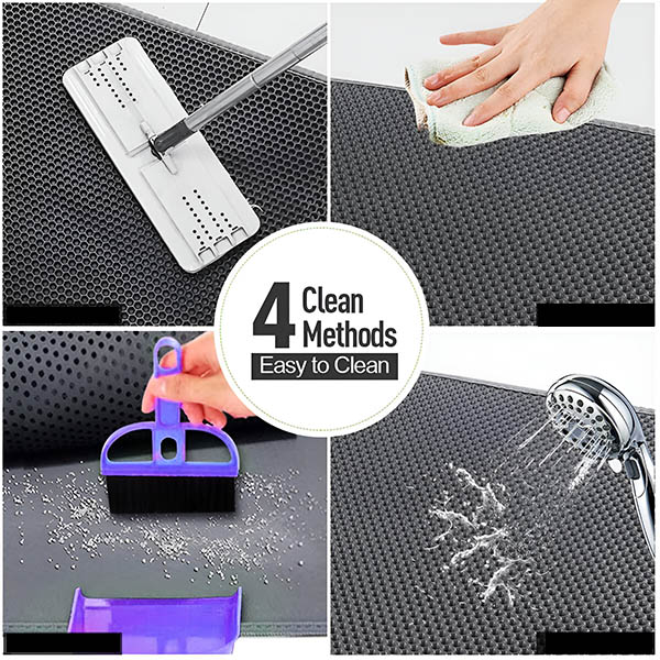 Pulire questo tappetino è un gioco da ragazzi. È sufficiente scuotere la lettiera, passare l’aspirapolvere o sciacquare con acqua. Se il gatto vomita sul tappetino, è possibile lavarlo con un tubo; è facile da pulire e da asciugare. Proteggete i pavimenti in legno e i tappeti dalle macchie di urina. Evita che l’urina del gatto finisca ovunque.